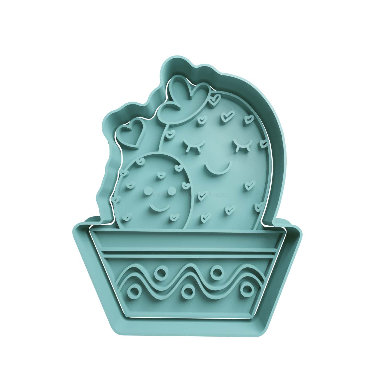 Cactus con Corazones Cortador de Galletas STL