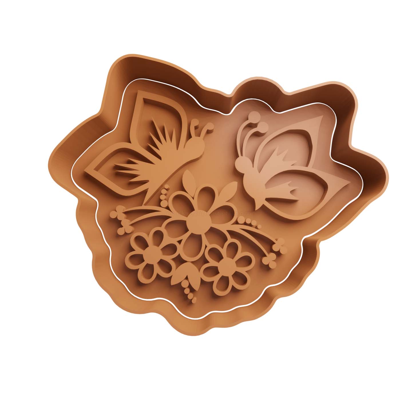 Flores con Mariposas Cortador de Galletas STL